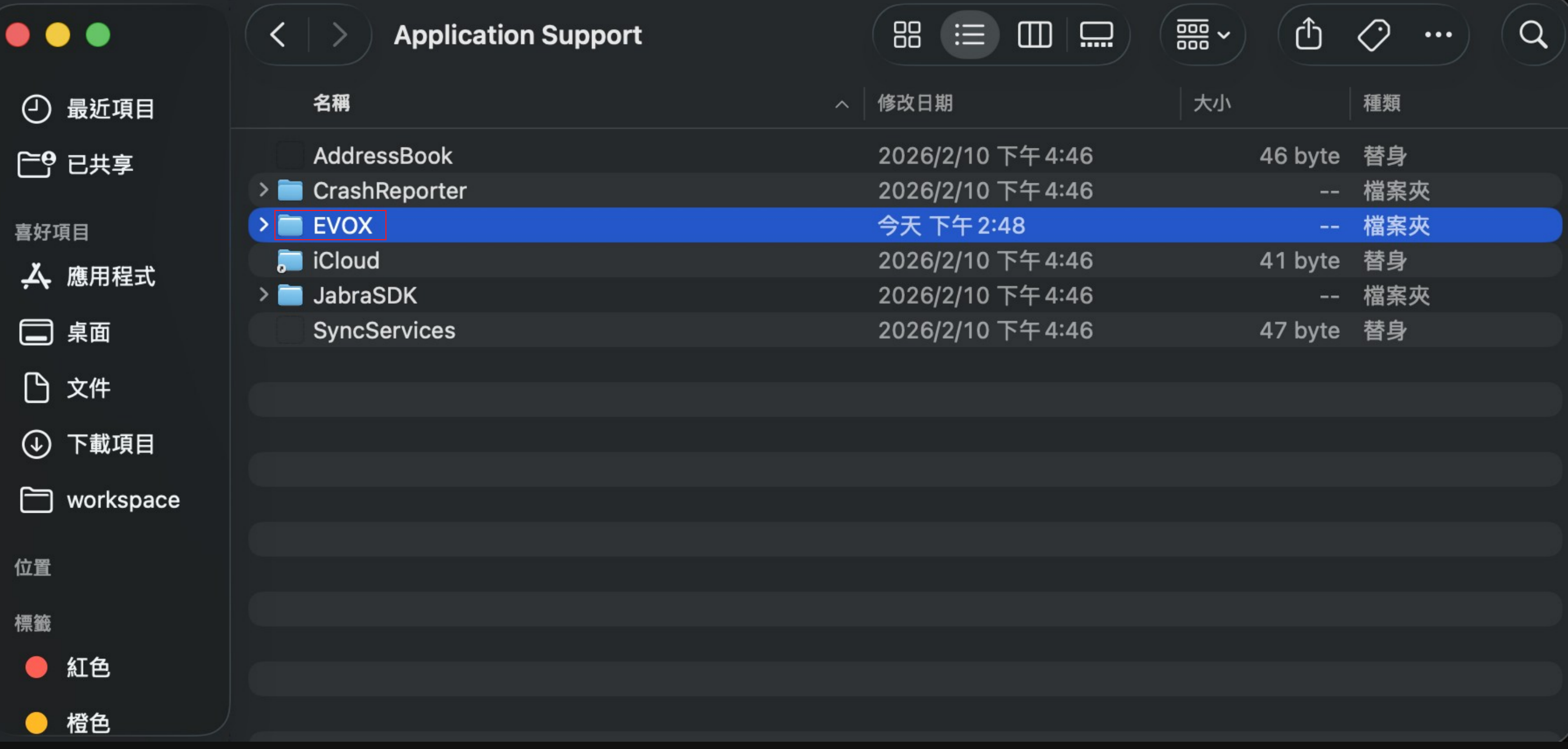 請協助在 Application Support 中嘗試將 EVOX 資料夾整個刪除
