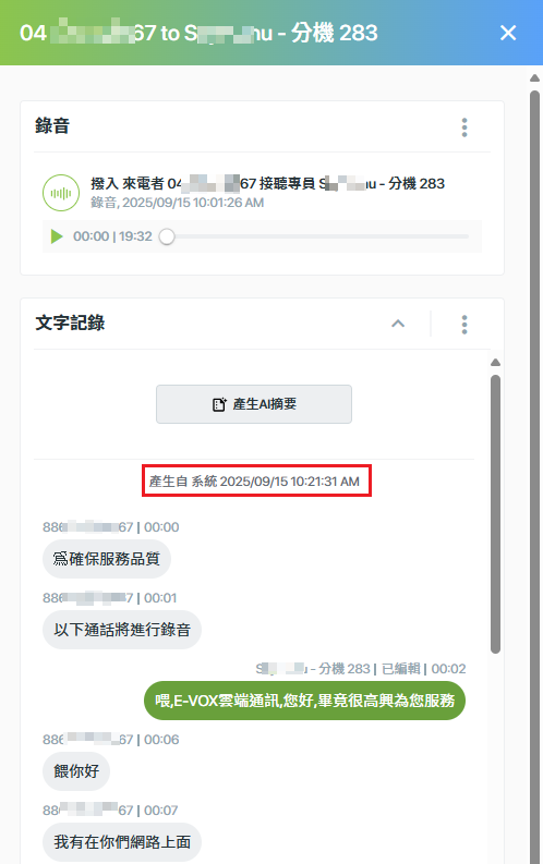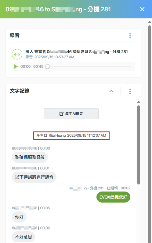 如果你不想每次都手動點擊「錄音轉文字」按鈕,可以選擇為特定同仁開啟自動轉文字功能。這樣同仁每次通話結束後,系統就會在背景自動把錄音轉成文字,省去手動操作的麻煩。
