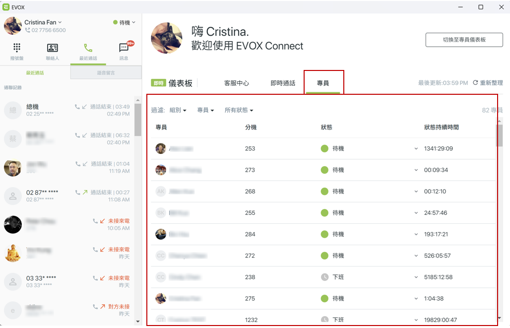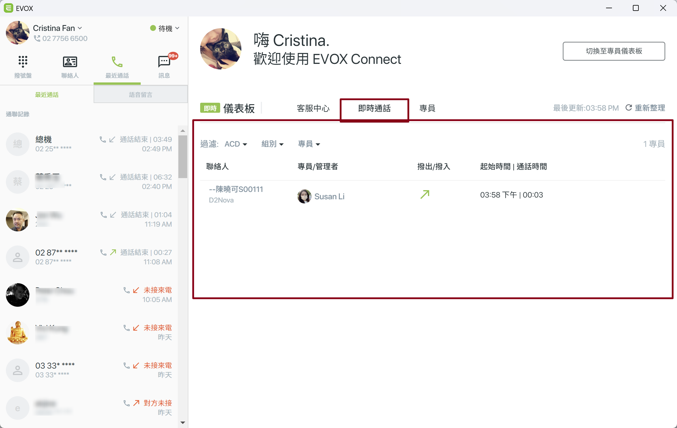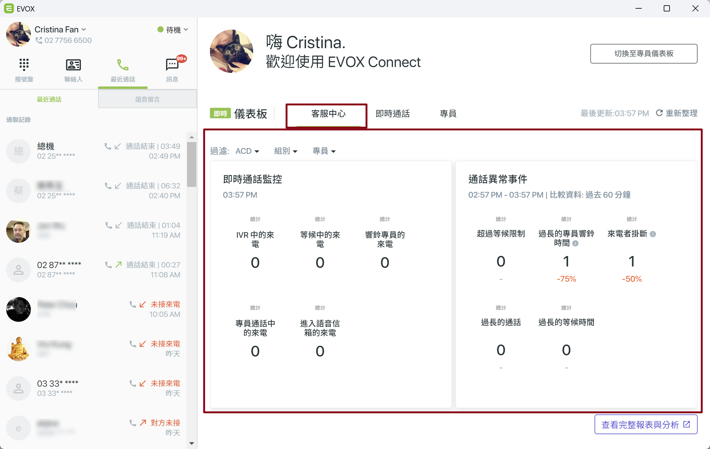 主管除了可以用 PC APP 與客戶進行通訊之外,還可以透過儀表板功能即時掌握團隊與通話狀況,方便在同一平台上進行管理與客戶服務。