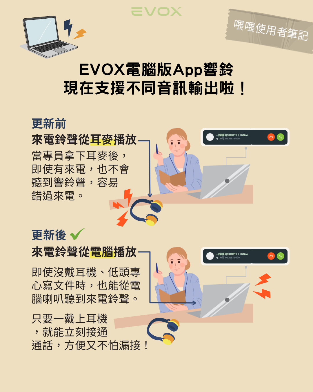 2025-06-20 EVOX 電腦版 PC App 響鈴現在支援不同音訊輸出啦!