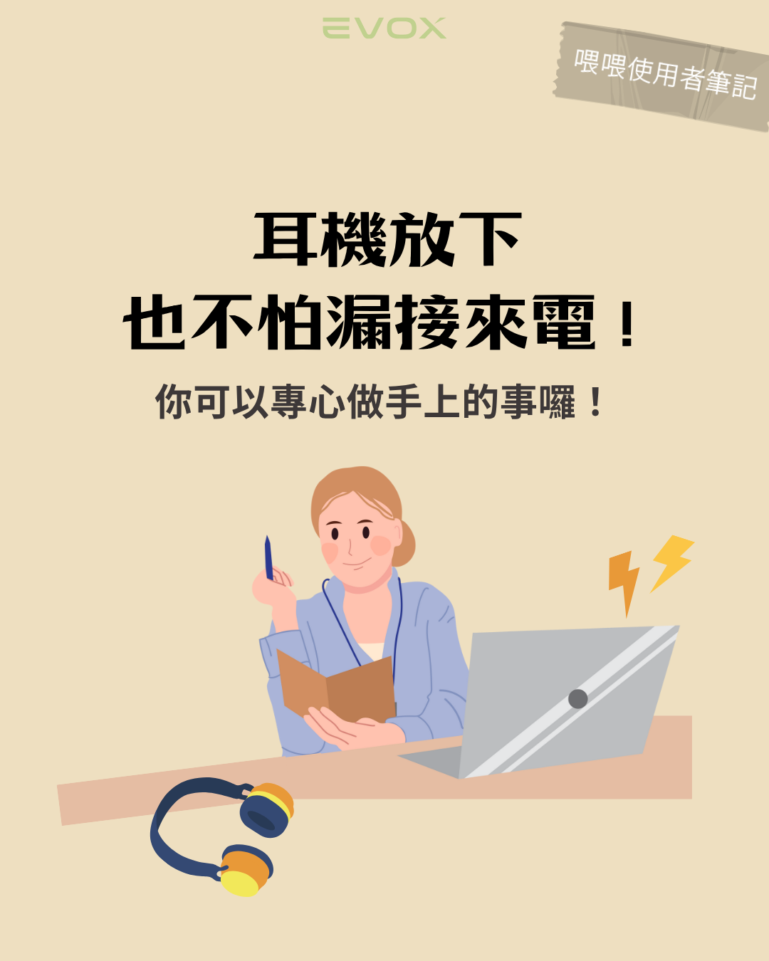 耳機放下,也不怕漏接來電!你可以專心做手上的事囉!