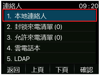 3.接著選擇【本地聯絡人】> 按下【確認】按鈕 | |
